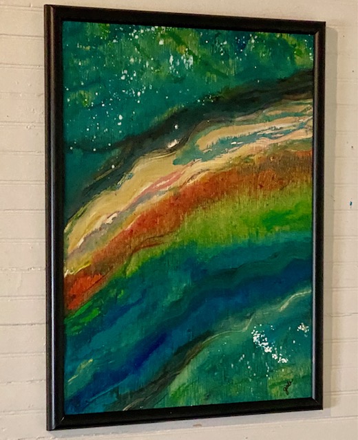 Gail specializes in abstract art. She starts with bold colors and lets her creativity flow. Gail works in a variety of mediums — recycled boards, wood and glass windows as well as canvas.