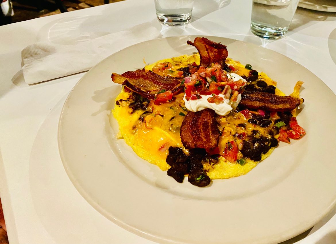 A popular staple is the chicken and waffles – we loved the well-seasoned, breaded chicken breast atop a Belgian waffle. On a recent visit, other favorites included the flavorful Cuban frittata, garnished with black beans, salsa fresca, cheddar and Texas-sliced bacon and the delectable Eggs Benedict made with a slab of fried green tomato instead of the traditional Canadian bacon (that’s available too).
